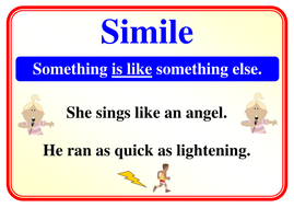 Simile. Like metaphors, they assist you to compare unlike things. However, they prefer a classical method, employing comparisons involving connectors, for instance "like" and "as."